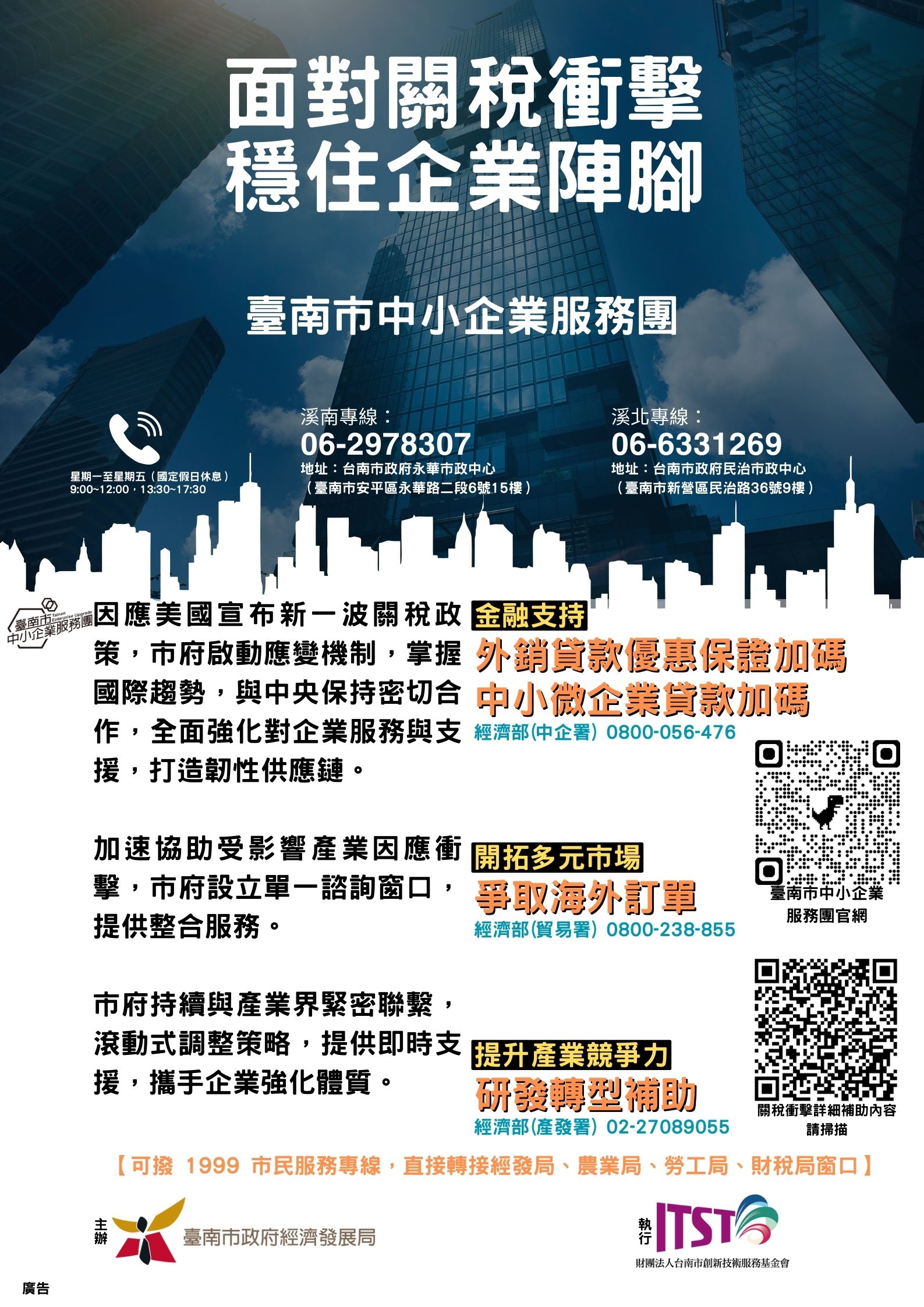 114年臺南市工業區廠商服務品質提升計畫將於6-9月份在各工業區開辦系列培訓課程,歡迎踴躍報名參加。