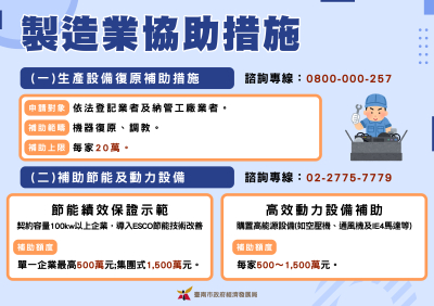 申請對象:因颱風致機器設備損壞之製造業。