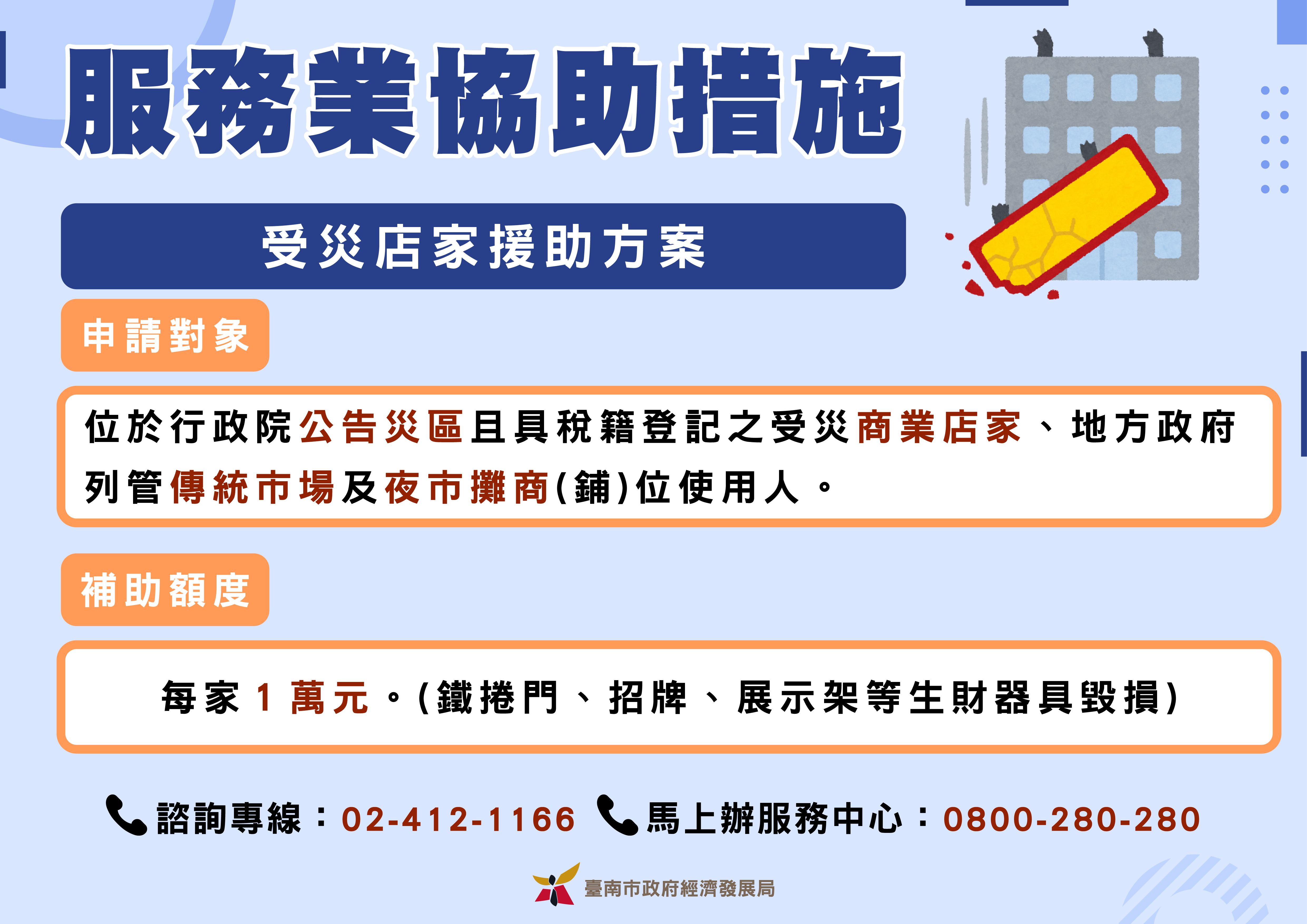 申請對象:受災中小企業及稅籍登記業者。