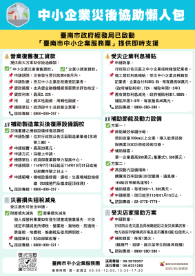 臺南市政府經發局已啟動「臺南市中小企業服務團」提供即時支援