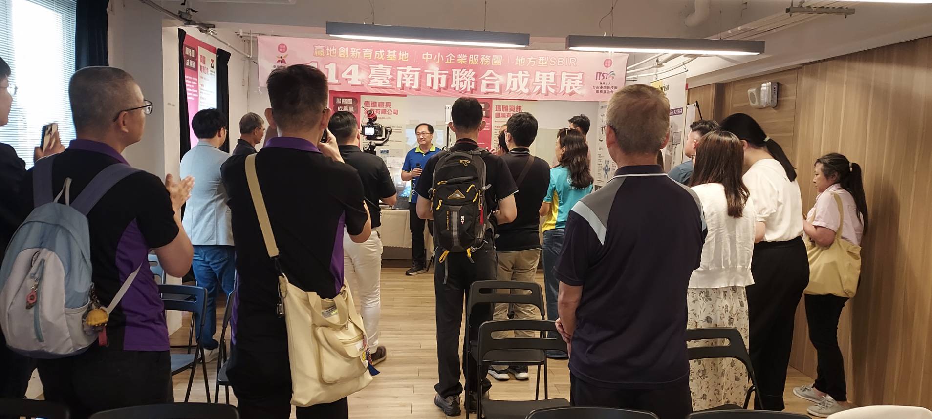 市府經發局於今日(11月17日)下午在新營區「贏地創新育成基地」舉辦「114年度SBIR & 贏地 & 中小企業服務團」聯合成果展,集結贏地創新育成基地進駐團隊、中小企業服務團廠商以及地方型SBIR績優企業,共同展示累積1年的輔導成果及效益,促進業者間交流合作。